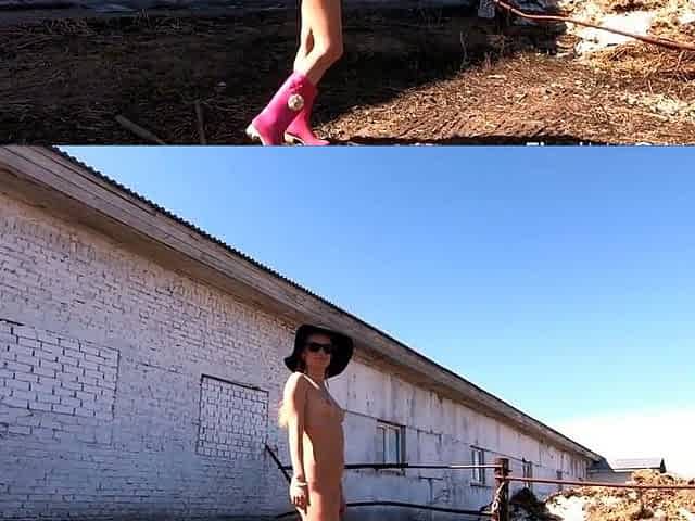 Naked Blonde Russian Teen Walks on the Farm