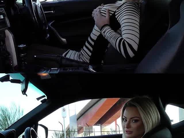 Blonde is flashing her big boobs in the outdoors