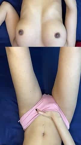 Real Morning Masturbation. Her Fingers Are Very Gently Caressing a Small Clitoris