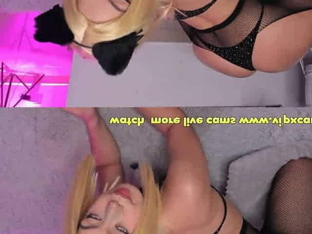 Double Ended Vibrator Booty Bang and Large Clitoris Play in Fishnets