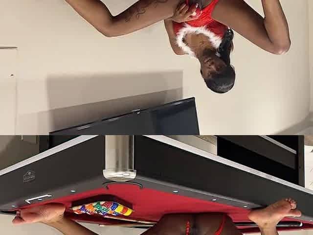 Black plays with her twat on the pool table