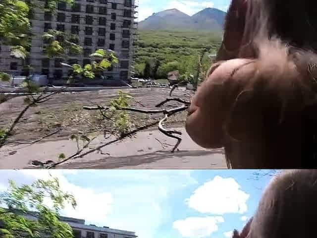 Exhibitionist Blonde Teen Walks on a Construction Site