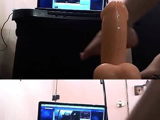Russian Amateur Rides Dildo Doggy-Style on Webcam