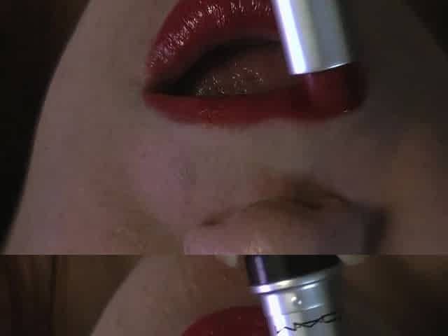 I Eat Lasagna - Close-up of My Mouth, 24 Teeth and Dark Brown Lipstick