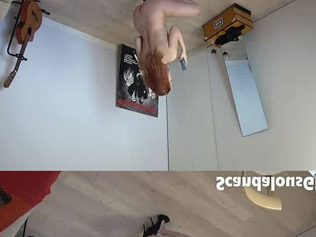 Hot and excited original redhead gal flashes her butt and satin pants when gets bored and ignored at home