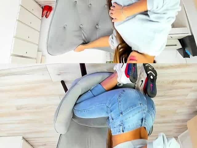 Solo babe Eva Straberry gets herself off on the kitchen counter in VR