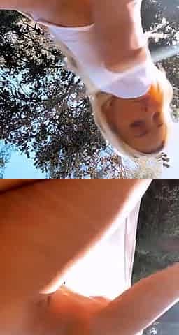 Big boobed brunette jerks off on the fresh air