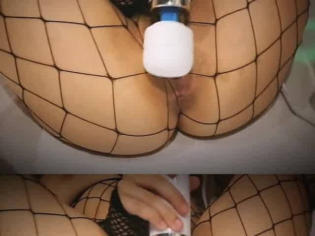 Gothic GF masturbates in fishnets whilst u see!