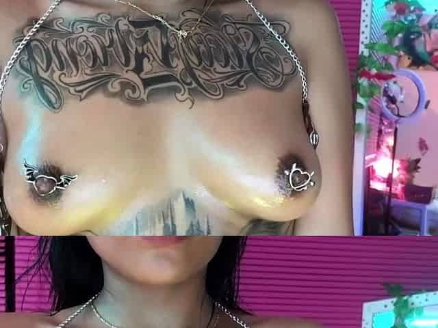 Vibrator Orgasm for Tattooed Webcam Girl with Small Tits