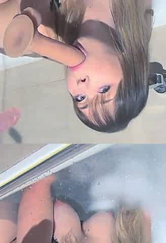 Kinky Blonde Rides 25cm Giant in Front of the Mirror!!