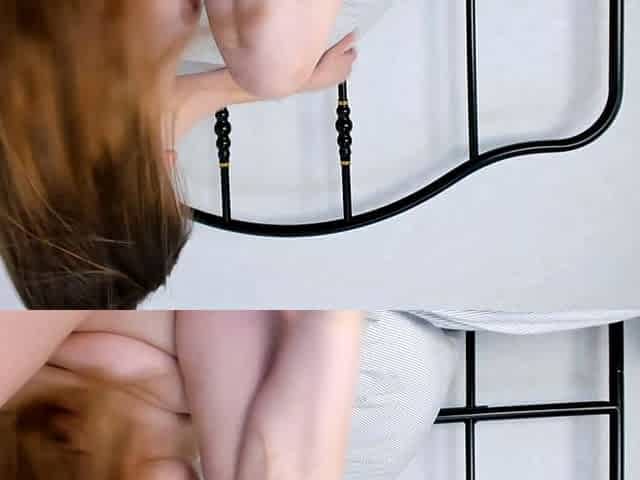 Cute amateur teen girl toying her pussy in bed on cam