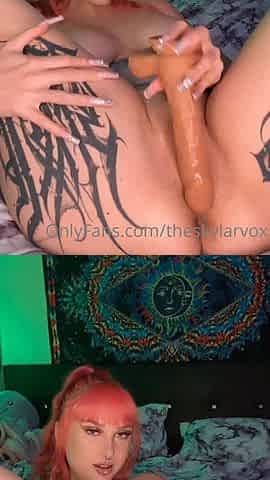 goth bitch fucks her big dildo till she cums