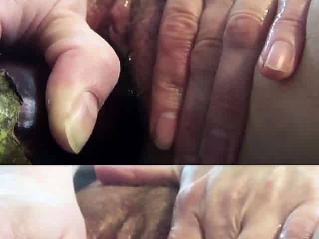 Mature Amateur Hairy Girl Masturbating with Aubergine