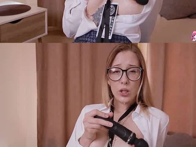 Nerdy Big Boob Model Vanessa Klein Masturbating With A Golden Dildo