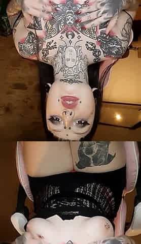 Tattooed Babe with Big Tits Puts on a Mask and Gets Into Character for a Daring Tease