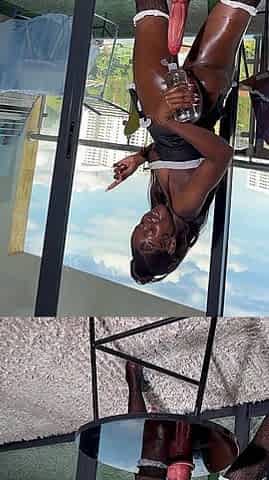 Busty Ebony Bouncing Her Wet Pussy on Her Dildo