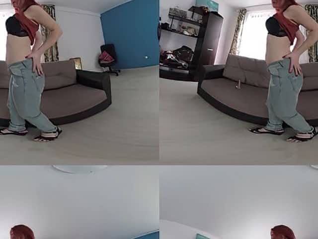Redhead chick Sabina Rouge is stimulating her little snatch