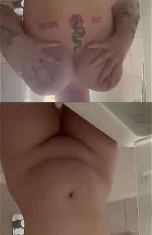 Loud Tattooed Big Natural Boobs Shower and Put on a Show with Fingers and Pink Dildo