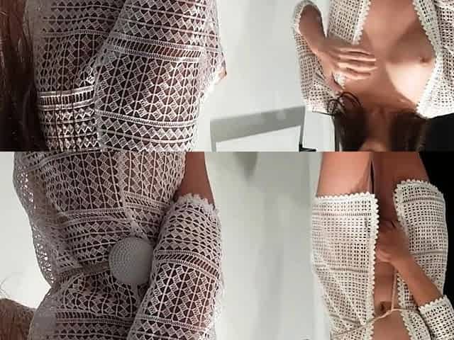 Amateur brunette Mirsur enjoys licking a popsicle and trying on clothes she cuts