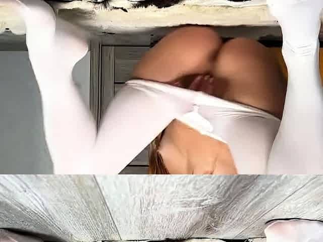 Sexy Inked Couple - Masturbation in white nylon Pantyhose