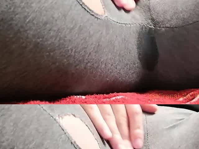 Cumming in gray leggings