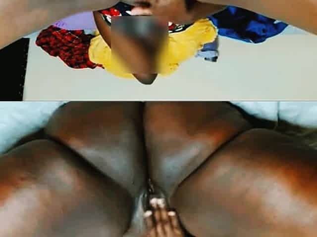 Chocolate Black Floozy Masturbates and plays with overweight twat outside and squirts