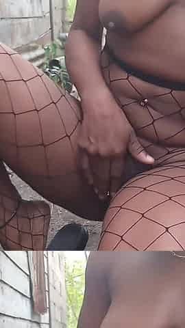 Teasing Outdoors in Fishnet Tights Rubbing My Pussy Squirt Cumming Hard