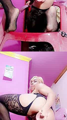 Solo Snow Fists Pussy and Fucks Throat with BBC Dildo