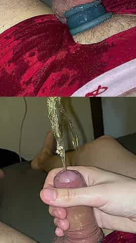 Peeing all over myself in daybed, whilst i wank with ruined jizz flow