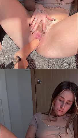 Horny MILF squirt while being fucked with fuck machine