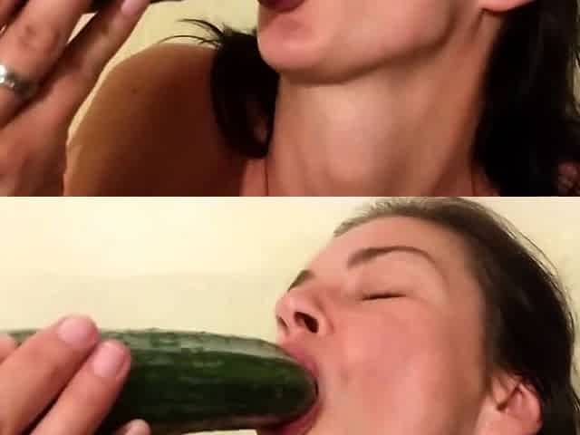Saucy amateur slut poking her twat with smooth sextoy