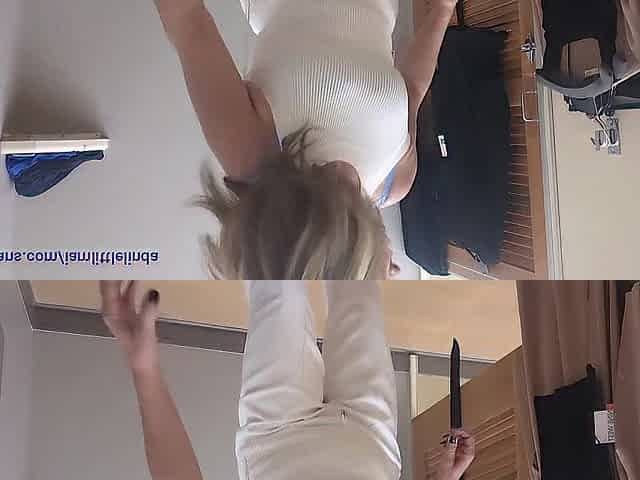 Amateur golden-haired plays with her hairless snatch and squirts at work