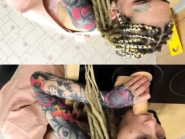 Tattooed Slut Squirts All Over The Bathroom Then Tastes Her Juices