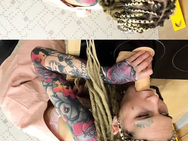 Squirting Solo Female With Tattoos Uses XL Dildo