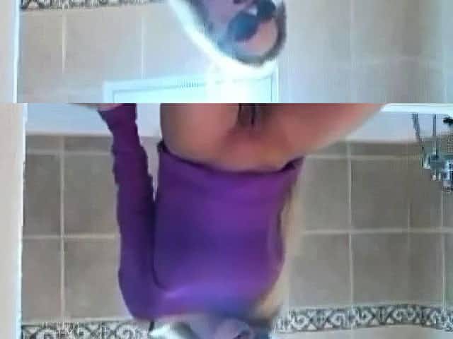 Solo darling is rubbing and washing her natural tits and delicious pussy