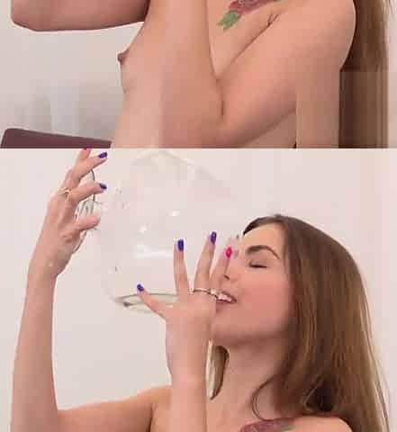 Glass of piss for a lovely brunette slut