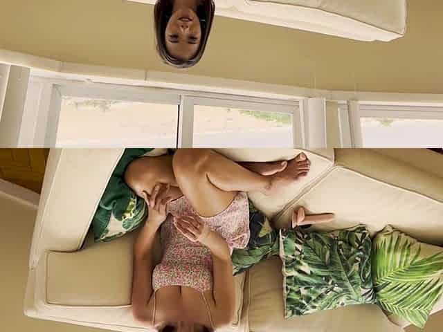 Cutie With Ponytails Rides A Dildo! Look How I Experienced Squirt Right On The Mirror!