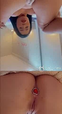 Selfie clip : Beauty having pleasure with a large sex-toy.