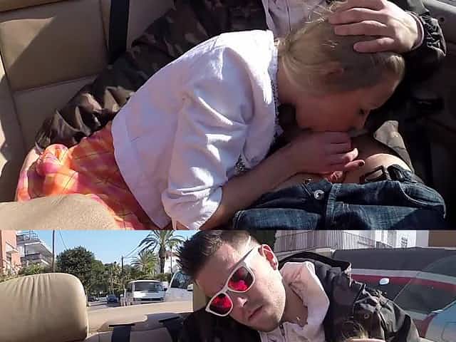 Horny brunette Spanish teen sucking cock after a sweet handjob