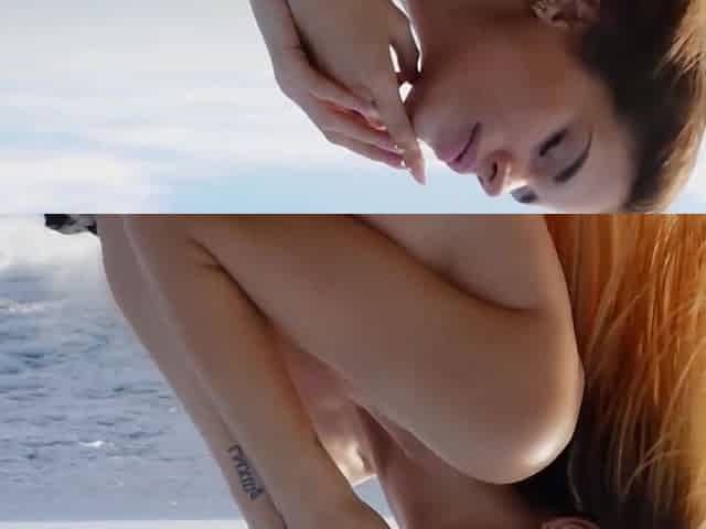 Bombastic brunette Spanish Lorena Hidalgo stripping and posing on rocks