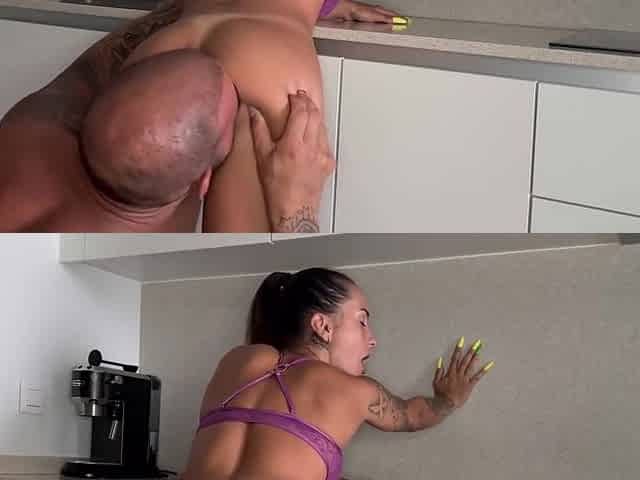 Su mujer le enseña el culo y se corre en él