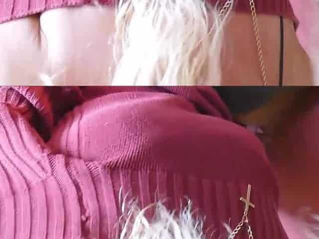 Flashing my tits in a sweater, rubbing my pussy over my panties before pulling my panties aside
