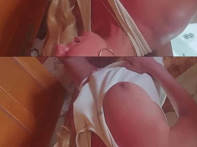 Caressing my boobs and squeezing my nipples, i pour water over my tshirt