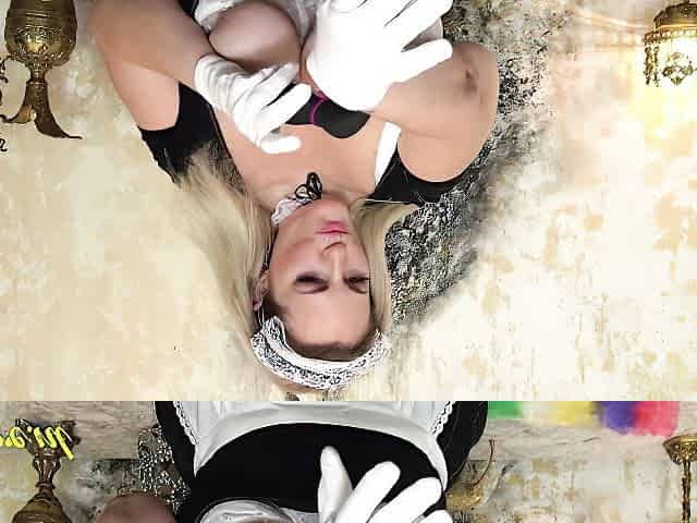 Cosplay Maid In Stockings In Latex Gloves Masturbates Big Clit And Big Labia