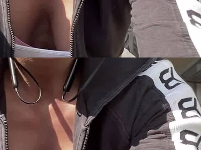 Big tits brunette cougar hot and sexy strip show on the rocks for the tourists