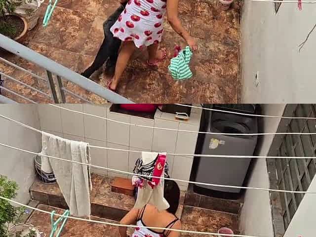 The neighbour is watched washing garments by her neighbour