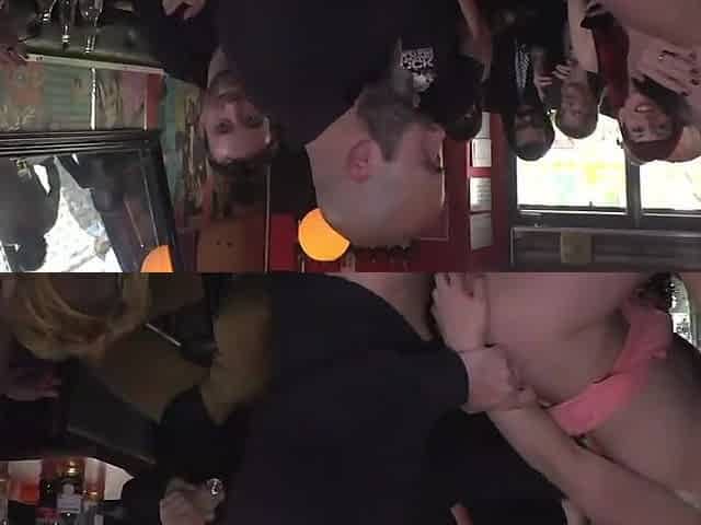 Public BDSM babe rough pussy n mouth fucked in front voyeurs