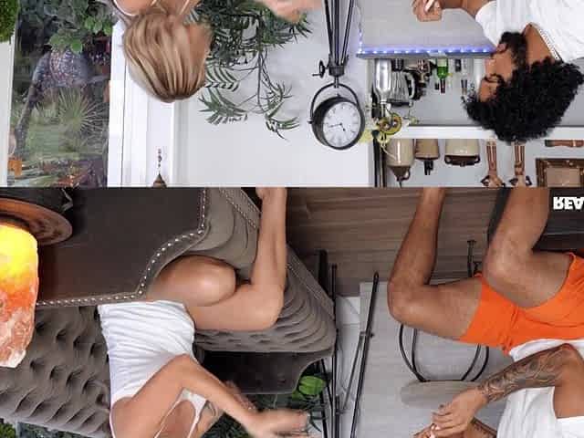 Busty blonde teen Britney Young rides on a huge black cock