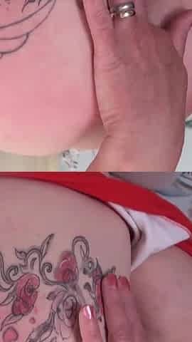 Hot tattooed girl Kat Woods in black spandex submits to edging and BDSM pleasures