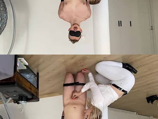 Sadistic femdom-goddess whipping and sucking thrall schlong